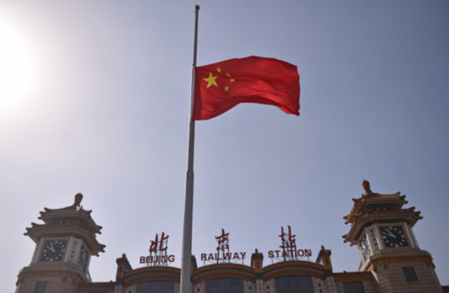 A flag at half mast in Beijing as China continues its battle against the Covid-19 virus.