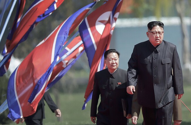 North Korean leader Kim Jong Un, right, and Choe Ryong Hae, vice-chairman of the central committee of the Workers' Party. Wong Maye-E