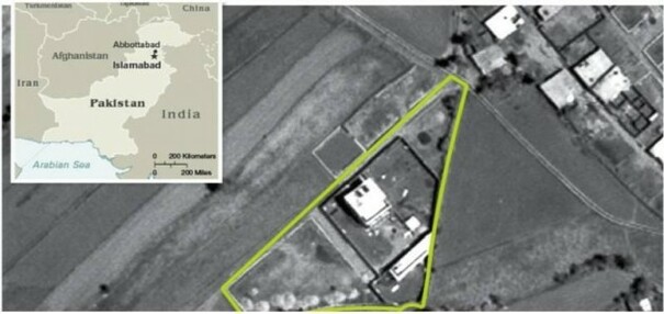 This large compound, protected by concrete walls and barbed wire, was built to shelter Bin Laden in 2005. 22 people were living in the building, and all of them were killed or captured by Seal Team 6.