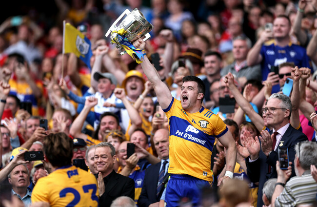 Tony Kelly lifting the Liam MacCarthy Cup. Morgan Treacy/INPHO