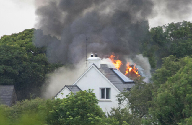 The alarm was raised shortly after 3pm when emergency services received reports that the house at Bishop’s Quarter on the N67 Ballyvaughan to Kinvara Road had suffered a lightning strike and was on fire.