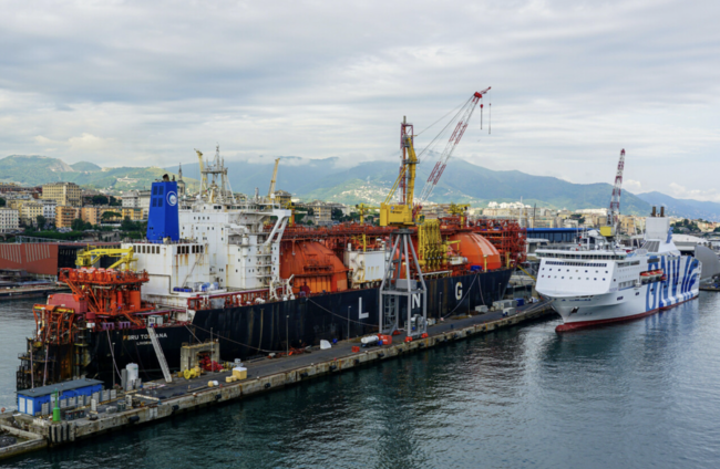 An LNG FSRU tanker moored in Genoa. Alamy Stock Photo