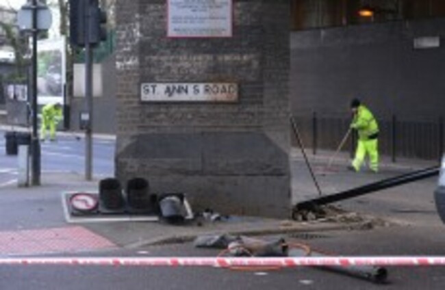 The Audi was believed to have driven through a red light and a short time later it clipped a white van and subsequently collided with a bridge on Seven Sisters Road, near to the junction with St Ann’s Road, in Haringey. The driver of the white van was taken to hospital suffering minor injuries.