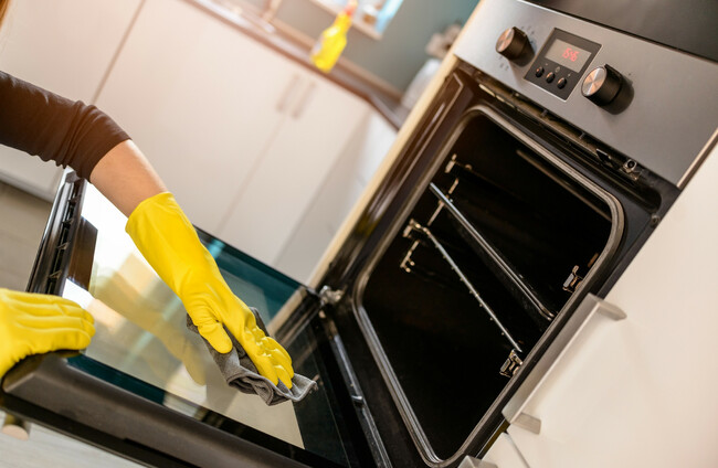 If you’re purchasing a new appliance, consider an oven with a self-cleaning option. This means that your oven has the ability to achieve temperatures of up to 500°C, thereby turning any food residue into ash that can be easily removed.