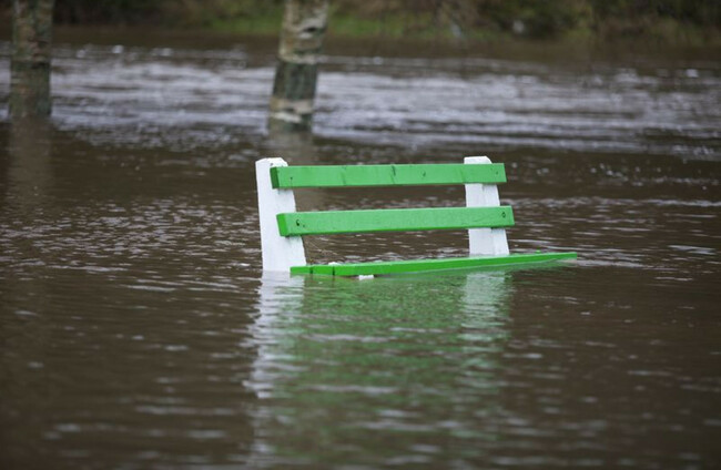 A park bench under water during flooding at Inistioge in County Kilkenny in 2015 Eamonn Farrell/RollingNews.ie