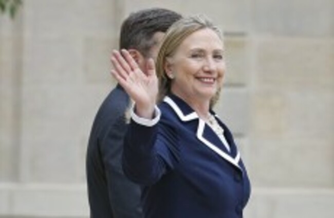 US Secretary of State Hillary Rodham Clinton waves a good bye as she leaves the Elysee Palace AP Photo/Remy de la Mauviniere