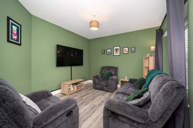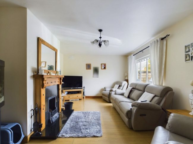 Each bedroom has a double bed, with the main bedroom featuring an en suite bathroom. The bright living room, enhanced by a bay window, makes the space even more welcoming, while the sunroom and kitchen with dining area offer plenty of versatility. With fibre broadband for remote work, the M7 motorway just ten minutes away and Dublin within an hour’s drive, this home is as practical as it is charming.
