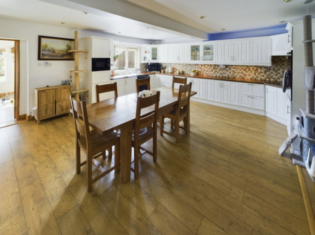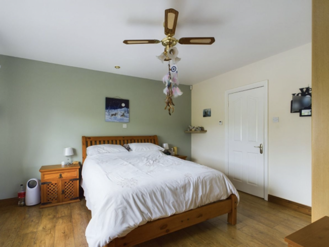 Sitting on a peaceful cul-de-sac surrounded by the countryside, this lovely four-bed bungalow is spacious and modern, spanning 180 m². The property has generously-sized rooms throughout, including a standout kitchen with extensive worktops, lots of storage and an adjoining utility room with an extra sink. Double doors lead to a sunroom that overlooks the landscaped gardens. The main bedroom features an en suite bathroom, while the main bathroom includes a full-sized bath, standalone shower with pressure jets and a radio.