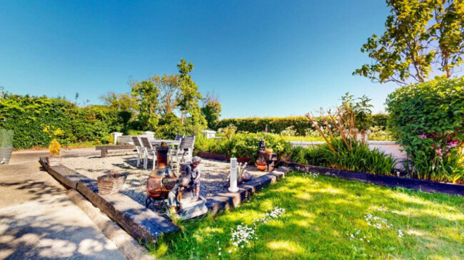 This striking four-bed detached home is set on a beautifully landscaped one acre site in Roestown near Ardee. It enjoys uninterrupted countryside views and a perfect south-facing aspect. Built in about 2010, the stone-clad exterior harmonises with mature trees and ambient lighting, while multiple patios offer ideal spaces for outdoor dining and relaxation. Inside, the open plan kitchen, dining and sunroom area forms the heart of the home, with vaulted ceilings, oak cabinetry and abundant natural light creating a warm, inviting atmosphere.