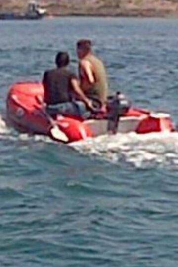 The picture was taken by an Irish Coast Guard safety patrol boat from Crosshaven station in Cork Harbour yesterday and shows two persons on board a small inflatable boat with no lifejackets.