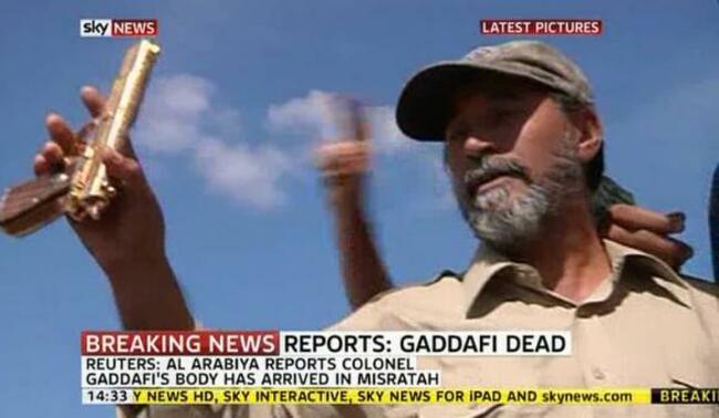 This picture being broadcast from Sirte purports to show a gold gun which Gaddafi had on him earlier today: