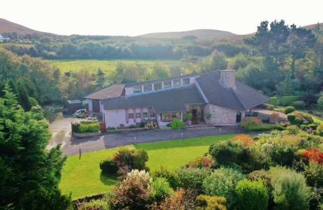 Ard Scotia is a unique, pink five-bed that’s five minutes from Tralee town with views over Tralee Bay and the surrounding landscape. Protected by electric gate access and surrounded by a tarmac driveway and gardens, the house is well positioned to get the best of the sun throughout the day. Inside, the hall leads to to the large living area with access to the patio door. The lounge then links to the dining room and then the kitchen with utility room off it.