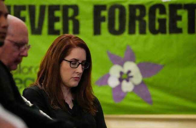 Columbine High School shooting survivor Anne Marie Hochhalter during a vigil for the 25th anniversary of the mass shooting in Denver last year.