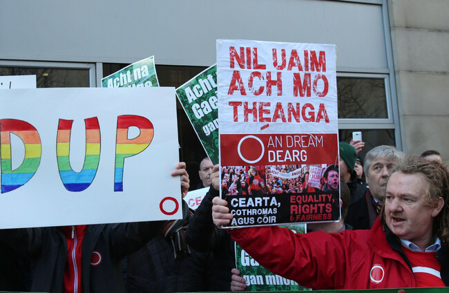 I litir oscailte sínithe ag ceannairí Shinn Féin, an SDLP, Páirtí an Chomhaontais (Alliance), Pobal Roimh Bhrabús agus An Comhaontas Glas mar aon le hUachtarán Chonradh na Gaeilge, Ciarán Mac Giolla Bhéin.