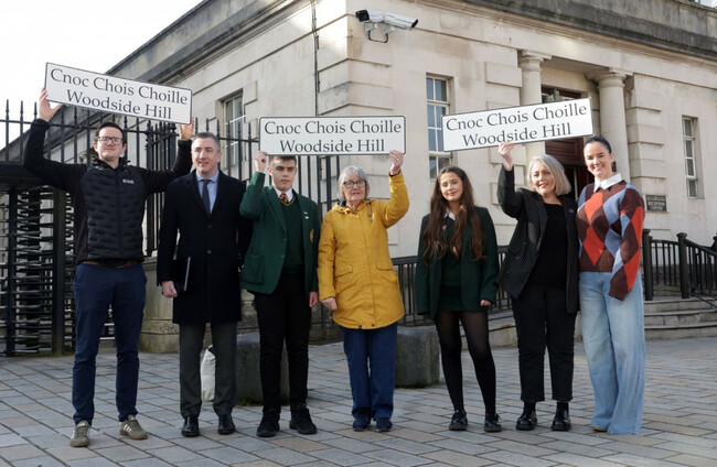 “Beagnach ceithre bliana ar aghaidh ó rinne muid an t-iarratas don chomhartha dátheangach dár sráid beidh ár dteanga dhúchais le feiceáil in airde ar Chnoc Cois Coille,” dúirt sí .