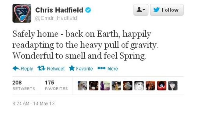 Thanks to Hadfield's son Evan, the commander's Twitter and Facebook feeds were kept updated throughout the journey: