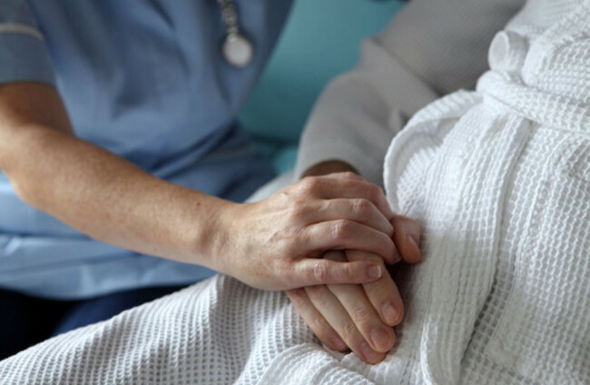 File image of a nurse holding patient's hand. ALAMY STOCK PHOTO
