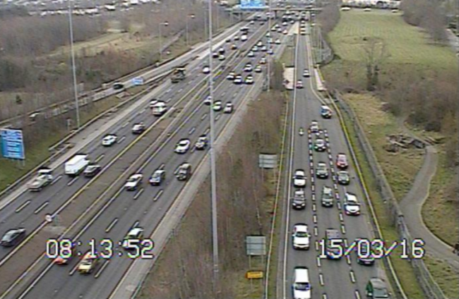 On the M50 at Tallaght, cars as far as the eye can stretch…
