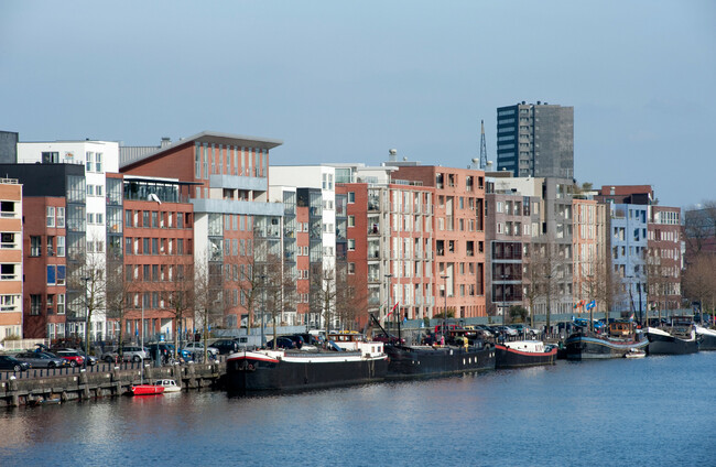 Modern apartment buildings by the canal in Amsterdam Alamy Stock Photo