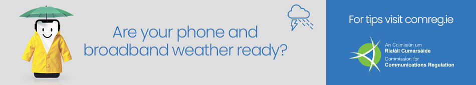Be sure to visit ComReg’s website today for further guidance on how to prepare your phone and broadband for severe weather, so you can take practical steps to stay connected.