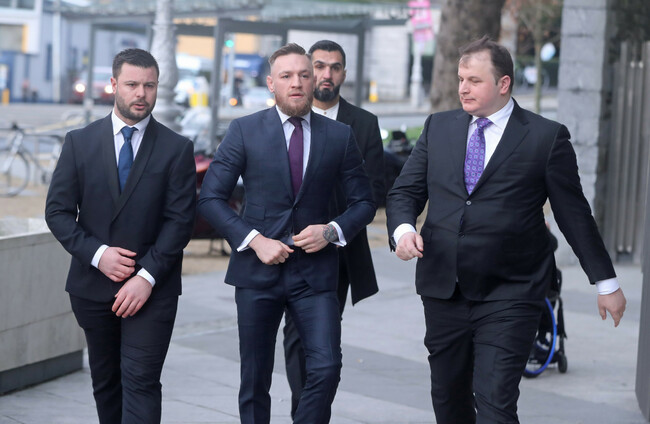 Minutes later, McGregor, from Laraghcon, Lucan, Co. Dublin arrived in a black BMW and was escorted by three minders.