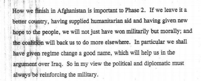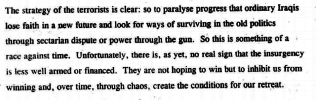 In a note in September outlining steps that needed to be taken to address a number of ongoing issues, Blair told Bush the aftermath and rebuilding of Iraq was proving, as the US president had predicted, the most difficult phase.
