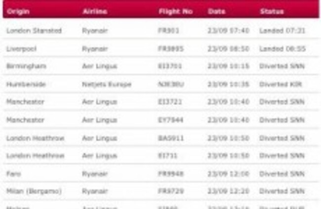 The airport was forced to cancel seven of its scheduled 22 outgoing flights today, while all flights scheduled to land between 9am and 5pm were forced to divert to either Shannon, Dublin or Kerry airports.