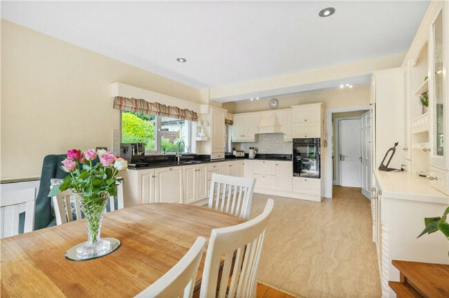 At the heart of the home lies a bright, dual-aspect kitchen and dining area. Bathed in natural light thanks to its south-west orientation, this space is both functional and stylish. Fitted with sleek granite worktops, ample cabinetry and high-end appliances, it’s a kitchen designed with both cooking and entertaining in mind.
