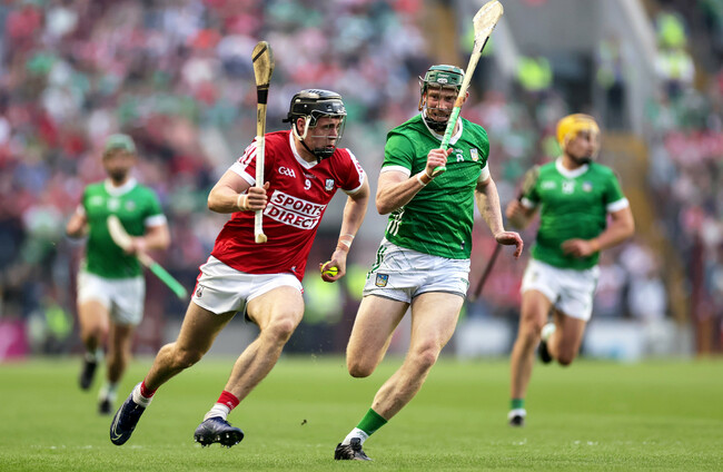 Cork's Darragh Fitzgibbon and Limerick's William O'Donoghue. Laszlo Geczo/INPHO