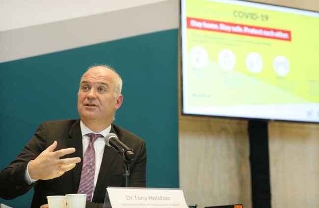 Chief Medical Officer Dr Tony Holohan at last night's NPHET briefing. RollingNews.ie