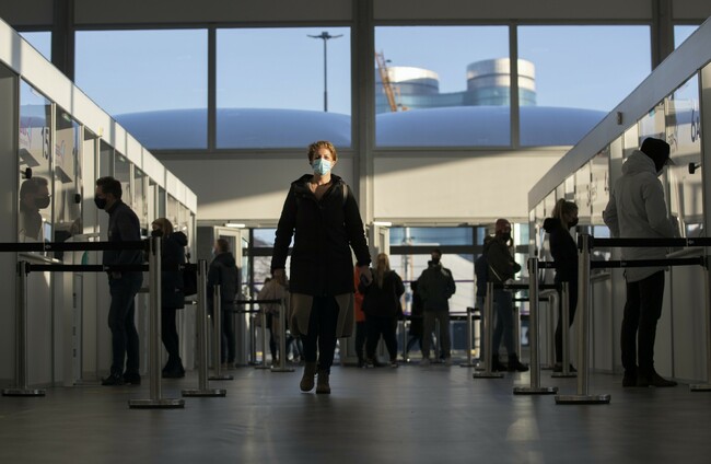People queuing for a throat and nasal swab at a Covid-19 testing facility in Utrecht, Netherlands. PA