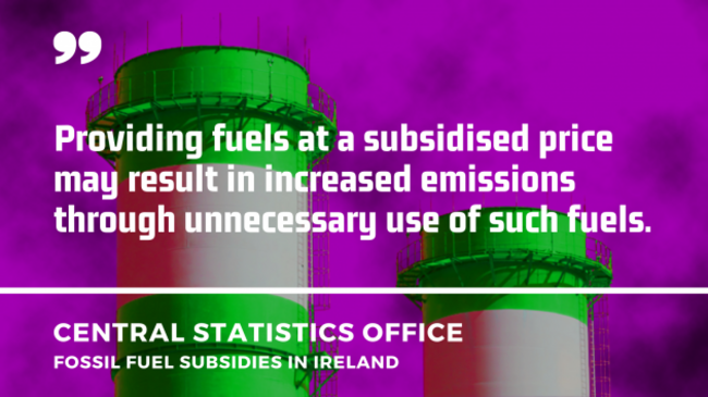 Since the CSO started closely tracking environmental supports in 2010, €8 billion has been paid out compared to over €20.5 billion in fossil fuel subsidies.