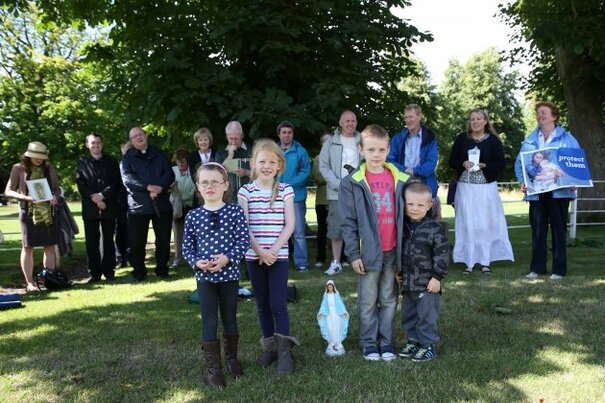 Amy Richardson (8), Luke Richardson (7), Anthony Richardson (3) and Nadia (6) with anti-abortion protesters outside Aras an Uachtarain while the meeting of the Council of State took place. Pic: Sasko Lazarov/Photocall Ireland