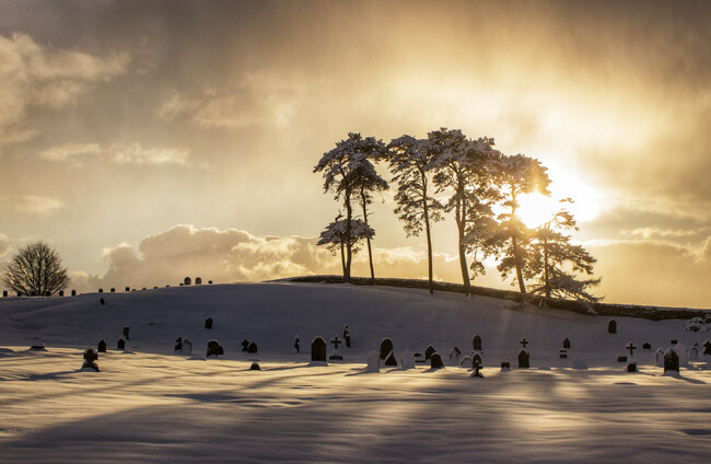 Sunrise at the Curragh, titled "A Snowy Sunrise". Susan Coffey