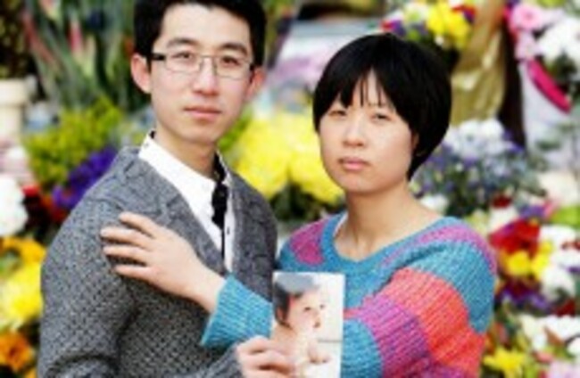 Meijiao Yu and her husband Xiao Shao hold a picture of their daughter Jiayi. Immigrant Council of Ireland