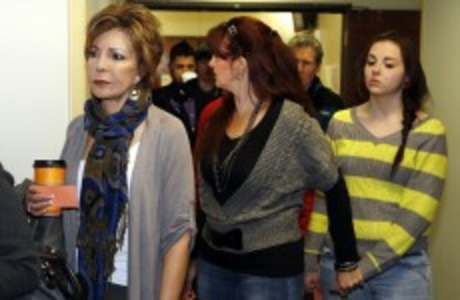 Family members and victims line up to get into court