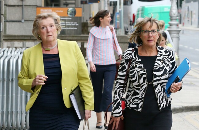 Orlaigh Quinn (Dept of Business) and Julie Sinnamon (Enterprise Ireland) entering Leinster House today. RollingNews.ie