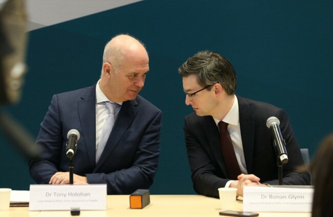 Dr Tony Holohan (L), chief medical officer at the Department of Health; and Dr Ronan Glynn (R) deputy CMO. Sasko Lazarov/RollingNews.ie