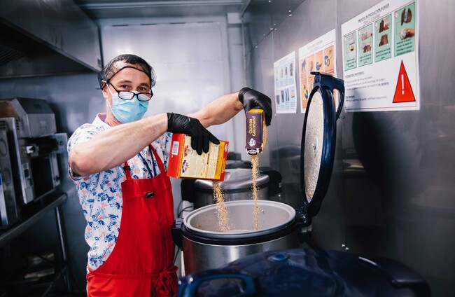 A volunteer prepares free food for medical workers at the kitchen of the Parc des Princes stadium in Paris, France, during the week. Xinhua News Agency/PA Images