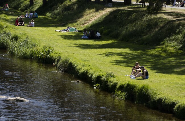 People enjoying the sun yesterday along the River Liffey in Newbridge, Co Kildare Eamonn Farrell