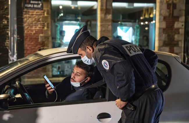 A policeman checks a resident during a curfew in Lille, France Xinhua News Agency/PA Images