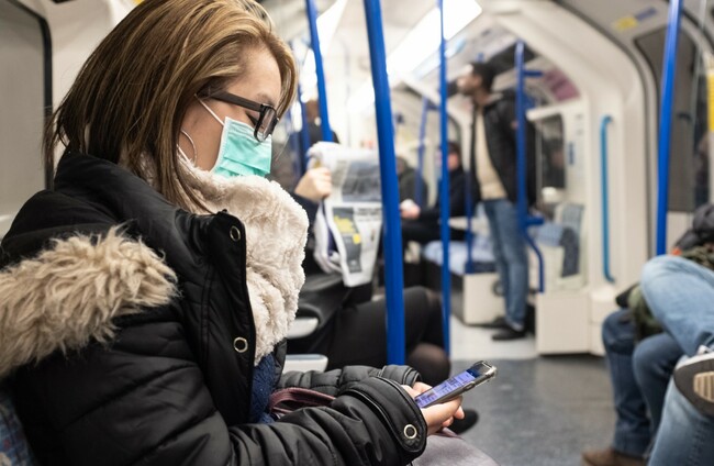 A woman wearing a facemask on the London Underground. Ian Hinchcliffe/PA Images