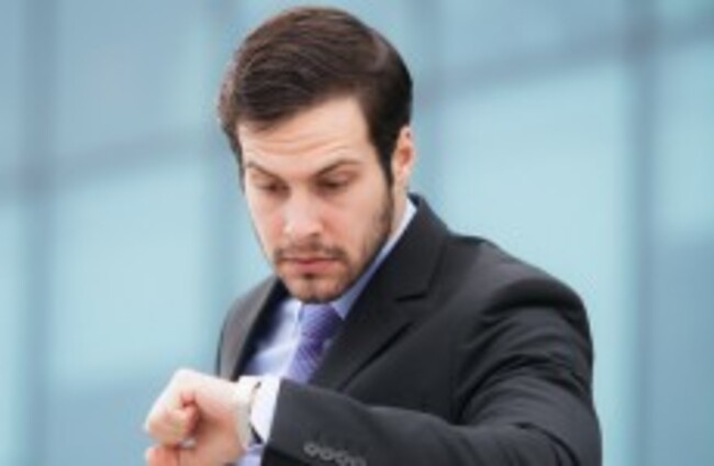 "Wait, so if it's 5pm in Moscow..." Man looking at watch via Shutterstock