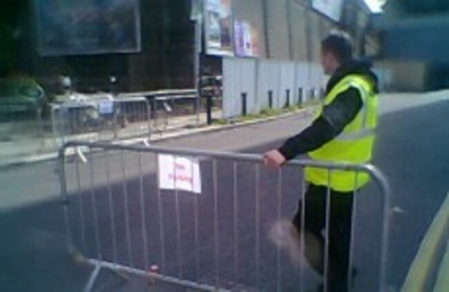 The law states that where a barrier has been erected only “a member of the Garda Síochána in uniform may by oral or manual direction or by the exhibition of any notice or sign… divert persons generally or particularly and whether in or on vehicles or on foot to another means of access to the event, including a means of access to that event on foot only…”.