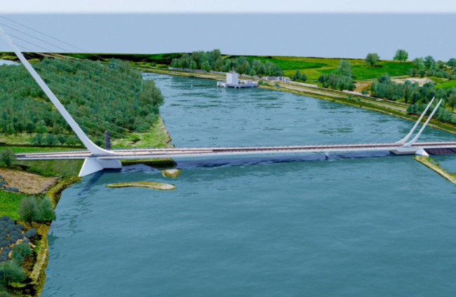 Planning permission is in place for a 280-metre cable-stayed bridge, anchored by two towers at either end, for car and cycle traffic.