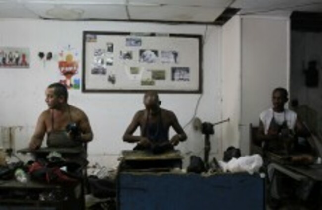 Workers repair shoes in the 'La Habanera' state-owned workshop in Havana, Cuba yseterday. Franklin Reyes/AP