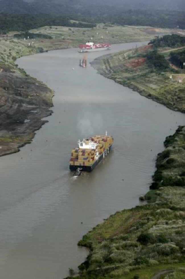 The Panama Canal officially opened in 1914, and a third lane of locks is currently being built there to allow larger container ships to pass through and reduce the backlog in ships waiting to cross.