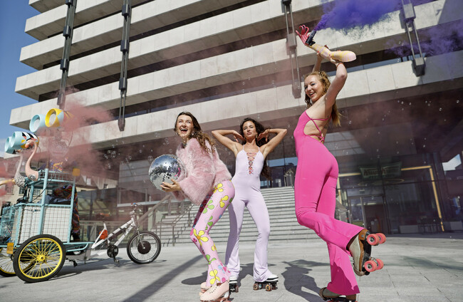 Roller skaters Gráinne Binns, Cliodhna Ní Mheadhra and Alba Cabello Hurtado pictured at Central Plaza on Dublin’s Dame Street which is set to host an outdoor roller disco tomorrow night. Julien Behal