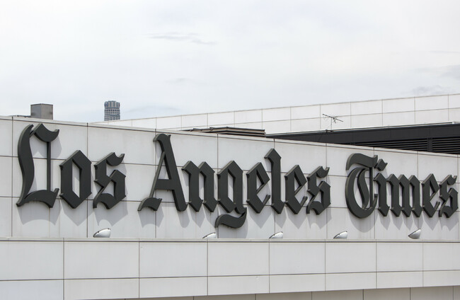 The facade of the Los Angeles Times newspaper building in LA, California. Shutterstock/Juli Hansen