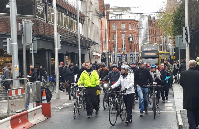 They also wanted to raise awareness of the impact of the new Luas Cross City layout on those who cycle around the city centre.